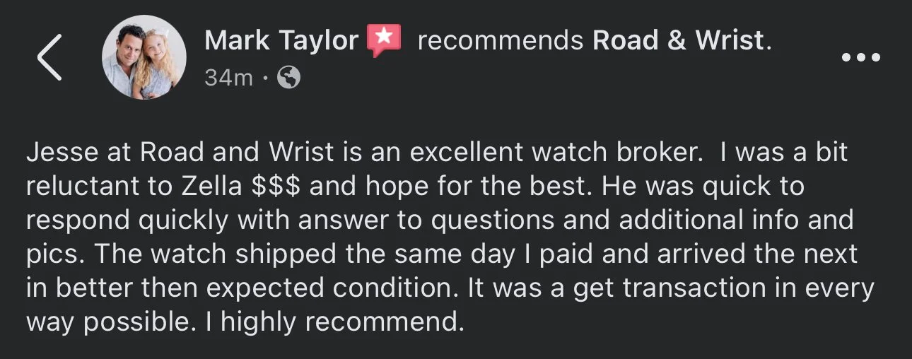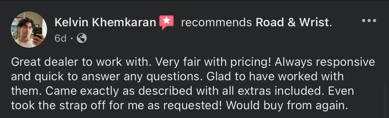 Every transaction tells a story. Whether it's sourcing a dream watch, selling a treasured piece, or upgrading a collection, our clients share what it's like to work with Road and Wrist.